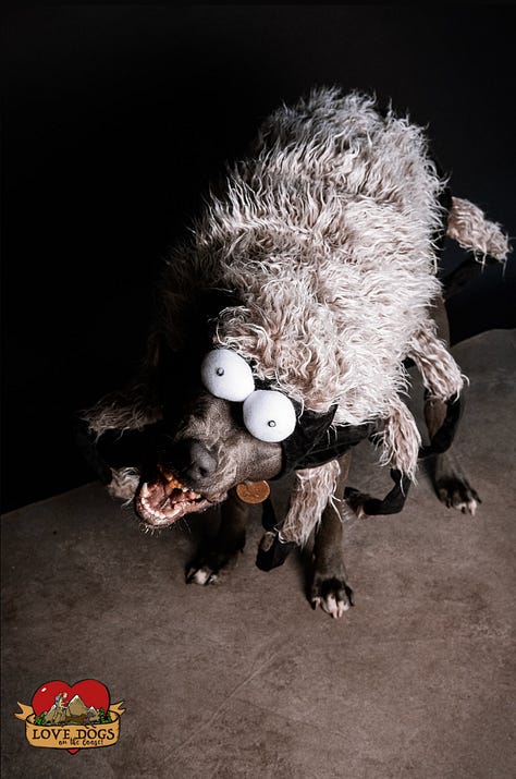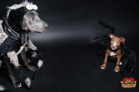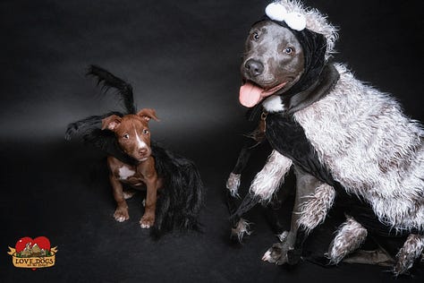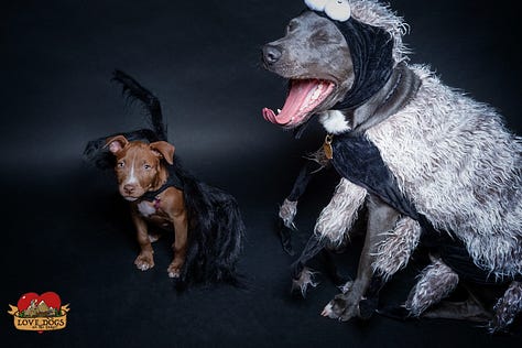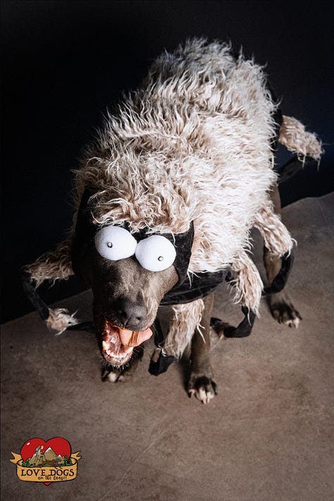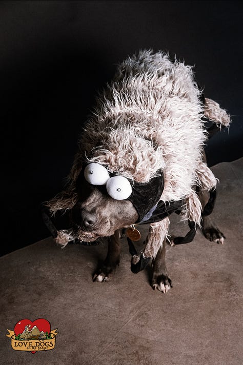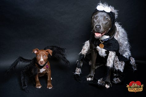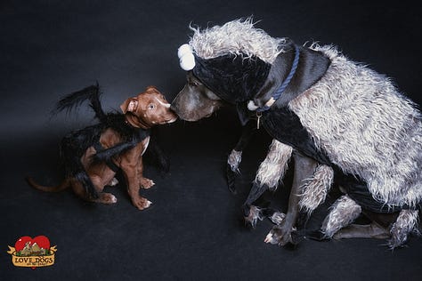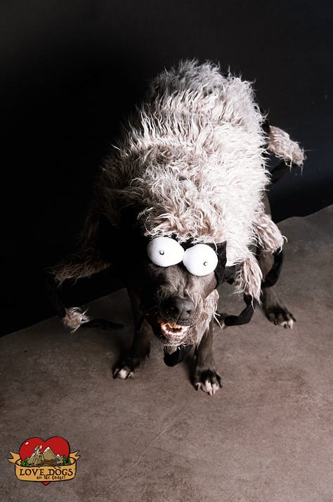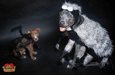 I hope you enjoyed this silly post. Incidentally, October was Pitbull Awareness Month. Here on the Love Dogs blog, we encourage and celebrate Pitbull Awareness everyday. Most of you reading this are already more than aware of how misunderstood and mistreated this breed is within our society, and how time and training go a long way, not just with Pits but with any dog. There's a dog trainer I follow on YouTube who has a motto I like: "No Bad Dogs." He works with some of the most aggressive, behaviorally challenged dogs in the world, and I've found him to be one of the more realistic dog trainers I've watched, advocating for learning to speak the dog's language vs forcing the dog to speak ours. And while (as I've said before here on the blog) "every dog is different," there's one thing I know to be true for them all: they require time and training (training as a collective action, that develops our own understanding of our dogs, as well as our dogs understanding of our expectations for them). And though they may not require it of us, they certainly benefit from a good bit of love.