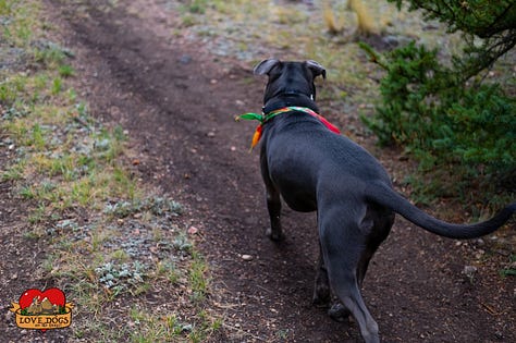 Since using the Dogtra with Japhy, things have changed radically. He has already proven to be a dog that is more about staying with his humans than running off and getting lost somewhere, but there is always that element of canine prey drive that can’t be 100% trusted. Since the first deer chase and subsequent purchase of the new Dogtra e-collar, we’ve worked off-leash a lot. I’ve been regularly taking him out to rural dirt roads to work off-leash with the e-collar. We’ve successfully stopped (mostly within a few steps) one subsequent deer chase, two rabbit chases, and countless ground squirrel chases. So this past weekend while out on the trail, I looked at my friend and said, “I may regret this, but....” and I unclipped the leash from Japhy’s collar. He was wearing the e-collar, and I had the remote controller in my hand with finger resting softly on the button as I hiked, ready to press it if necessary. I had planned to call him back and leash him right away if it seemed like it wasn’t going to work. I’m extremely sensitive to unleashed dogs approaching me on the trail (or anywhere), so I wanted to make sure I had complete control over Japhy when other people approached before they got close to us and/or before Japhy had the chance to approach them. As I sit here typing I am still utterly amazed by this dog. He did GREAT off-leash on the trail!! I was hyper-vigilant about watching for potential issues. And I’d given my friend the second ‘hands-free’ remote in case something happened and I wasn’t paying attention (not a likely scenario, but not impossible). Nine times out of ten he came right back to me when I called without using the e-collar to reinforce my request. When a person came up behind us, or approached from in front of us, I called him, he came, and I leashed him back up until the person had passed us. I let him off again as soon as it was clear. He never ran ahead of us more than a few yards, and on blind corners where I couldn’t see who or what might be around the bend, I had him “heel” (off-leash) until I could see that it was clear. Toward the end of the hike, when he was finally starting to get tired, he actually walked, off-leash, right between my friend and me in an absolutely beautiful heel. For me—someone who has only ever had dogs that wanted to immediately sprint off out of sight when off-leash—it is a truly remarkable thing to have this dog who just wants to walk beside me, and who even when walking in front of me stops and looks back every five seconds or so to make sure I’m still behind him. It makes my heart swell. Maybe that’s silly, but it does.