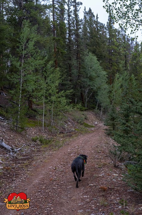 This past weekend Japhy and I headed out with a friend to do another short section of The Colorado Trail (the last “short” section between here and the finish). By “short” I mean 13.8 miles; however, because we arrived late and it was dark and hard to see much of anything other than the washboard gravel road we were driving on, we unknowingly parked the car 1.6 miles from the actual end of the segment, so we really only hiked 12.2 miles. The first section Japhy joined me on was 10.6 miles and we camped on that trip, splitting the mileage into two days. It was his first time backpacking with me, and it was a perfect introduction to see how well he would do. I’ve always been pretty adamant about not letting my dogs do more than 10 miles in one day, but this particular section was pretty easy (only 1447 feet of elevation gain across the entire 13.8 miles of mostly open jeep road hiking), and we had reached our planned location to camp within 2-3 hours of starting, so we decided to just keep going. We started at 8 a.m. and had reached the car by 2:30 p.m. That’s the fastest I’ve done any section of this trail since I started it in 2016!