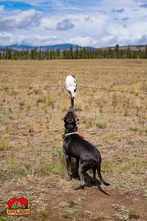 The photos below were toward the end of our hike this weekend. Lots of wide open space. Japhy was intrigued by the skull he found on a fence post and by the countless cows that we encountered. Every time a cow mooed he’d stop and look with endless curiosity. I leashed him as we walked through the cows, as they are particularly protective of their calves and a few of them had rather menacing looks about them as we walked by.